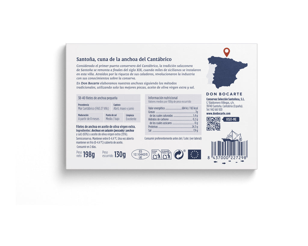 Anchoas del Cantábrico en aceite de oliva virgen extra 198g (38/40 filetes pequeños)