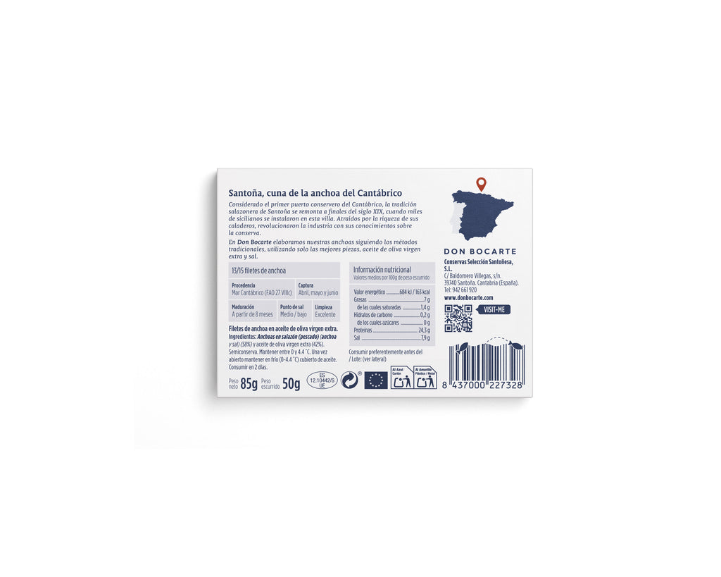 Anchoas del Cantábrico en aceite de oliva virgen extra 85g (13/15 filetes)
