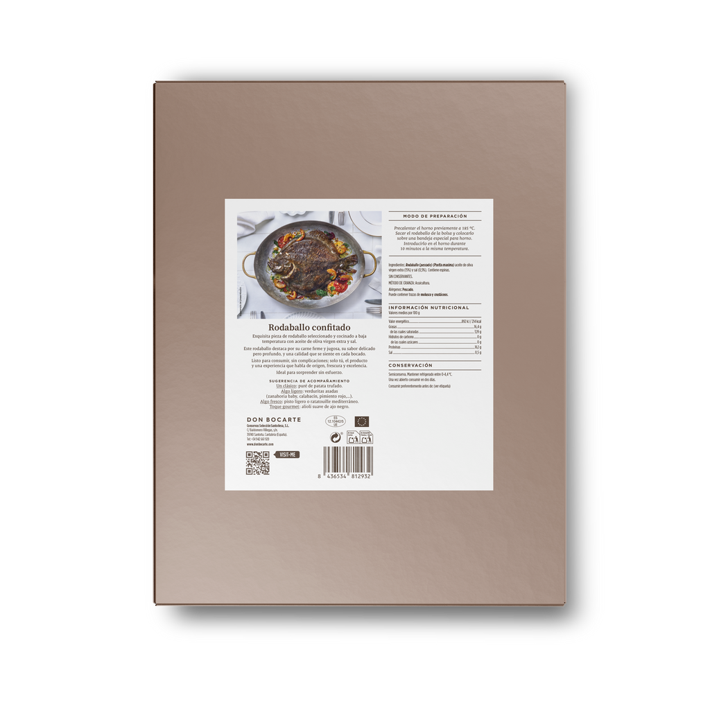 con aceite de oliva virgen extra y sal. Este rodaballo destaca por su carne firme y jugosa, su sabor delicado pero profundo, y una calidad que se siente en cada bocado.
